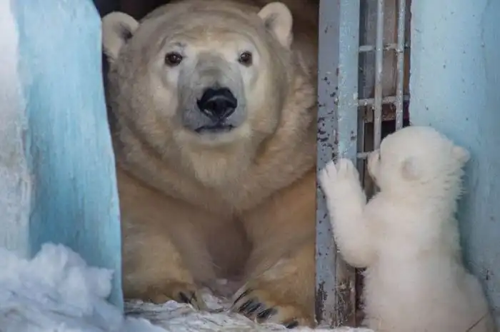 Не так давно я вам рассказывал о том, что в Новосибирском зоопарке родился медвежонок, фотографии которого появились в сети только сейчас. Кстати, случаи, когда белые медведи в неволе дают потомство, являются очень редкими. В Новосибирском зоопарке в последний раз такое событие произошло 42 года назад!