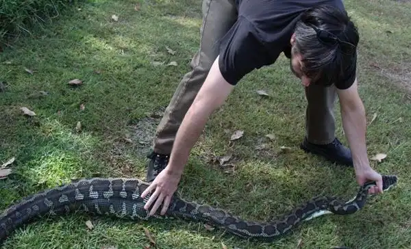 Когда утром женщина вышла на улицу, чтобы отвязать собаку, она обнаружила сытую змею, свернувшуюся внутри будки. Кроме того, что через туловище рептилии хорошо просматривались контуры собаки, доказательством того, что питомец находится в чреве хищницы служила также торчащая из ее пасти цепь.