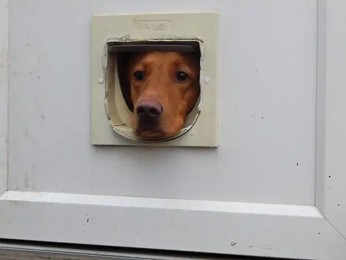 Кэти Грисольд сфотографировала свою собака Харви, которая пыталась зайти в дом через кошачью дверцу.