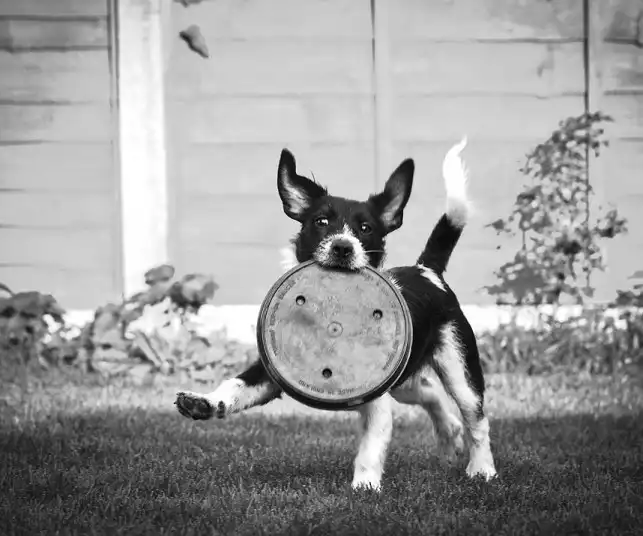 Эта работа Шона Голди показывает джек-рассела, Алфи, и что может быть с лотком от горшка, если с ним начать играть.
