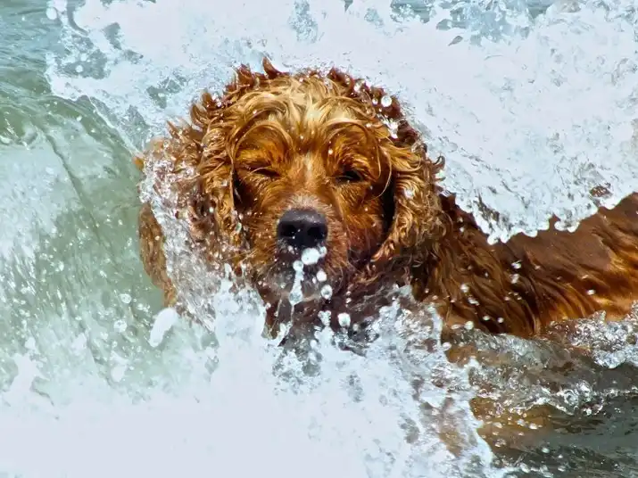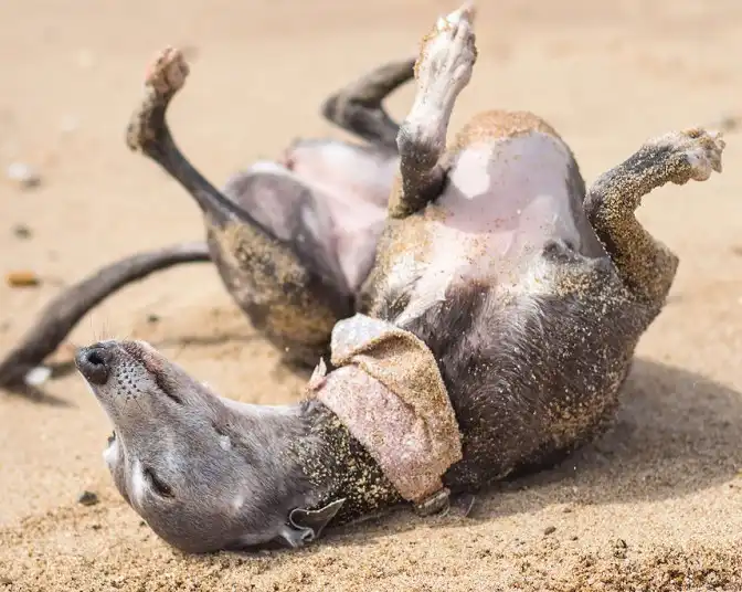 Элисон Тью сфотографировал свою восьмилетнюю гончую, Уиллоу, пытающуюся высохнуть после купания в море.