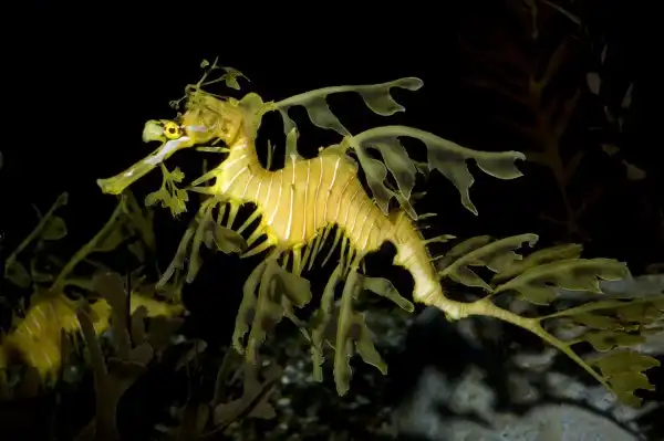 Подобно морским конькам, лиственный морской дракон (Phycodurus eques) получил свое название из-за отростков головы и тела, похожих на листья. Для большинства австралийцев лиственные морские драконы — тайна и миф. Гиганты среди морских коньков — взрослые драконы достигают целых 35 сантиметров, — они живут в лесах из морской капусты, растущей исключительно в восточной части Индийского океана и в Тихом океане к югу от Австралии (прежде всего в заливе Спенсера).