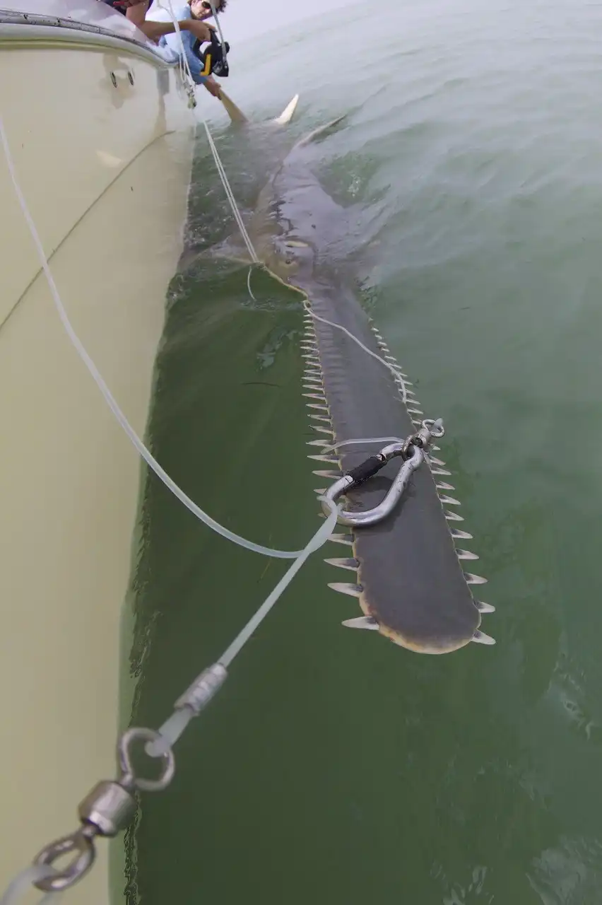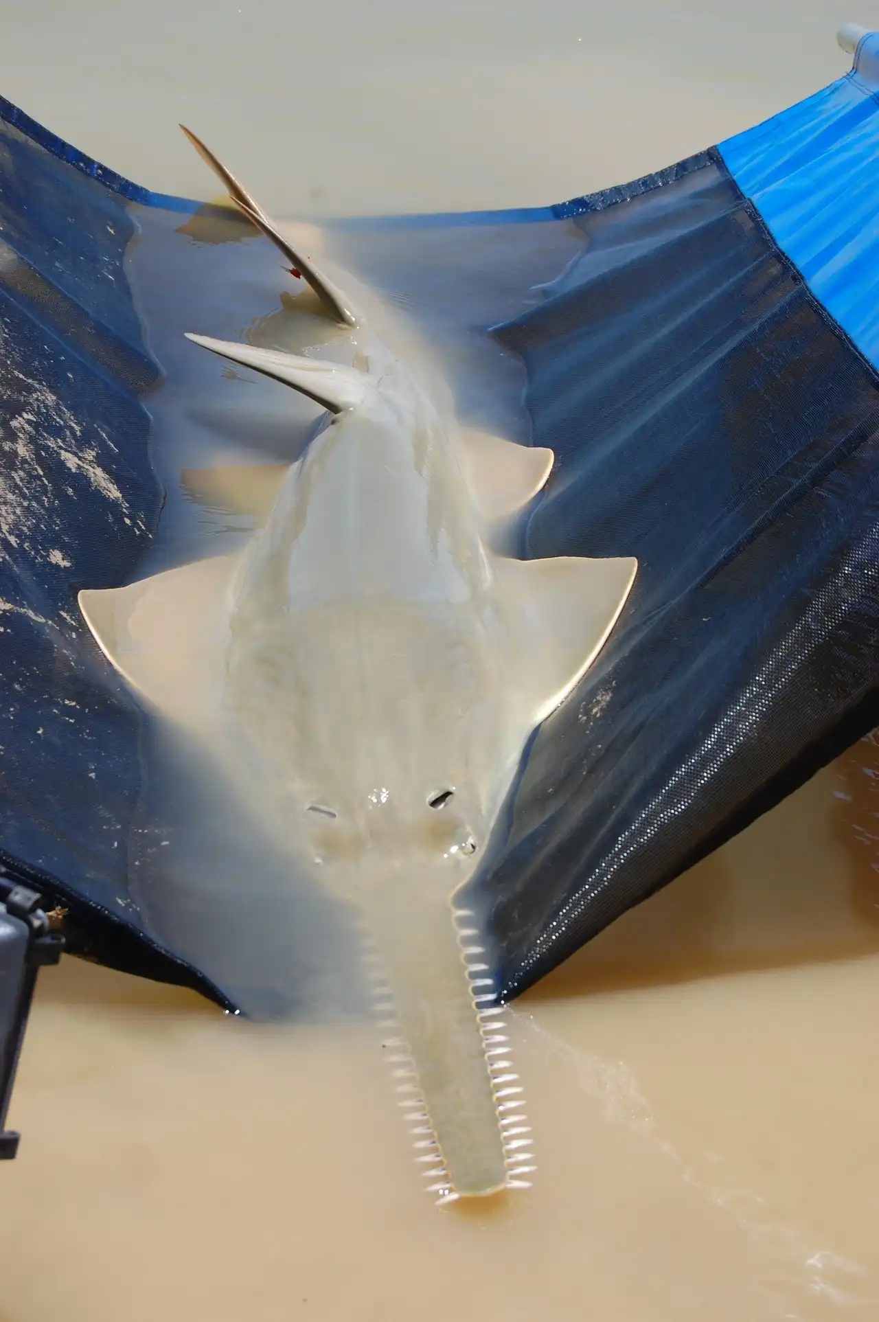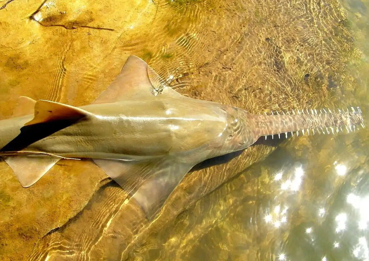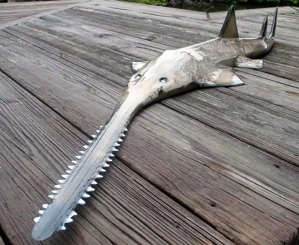 Этот обитатель Мирового океана выделяется среди прочих тем, что на голове у него есть костяной нарост с зазубринами, действительно напоминающий пилу и составляющий приблизительно четвертую часть от общей длины тела.