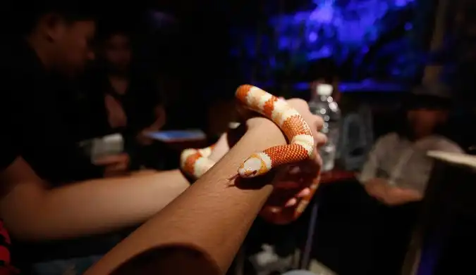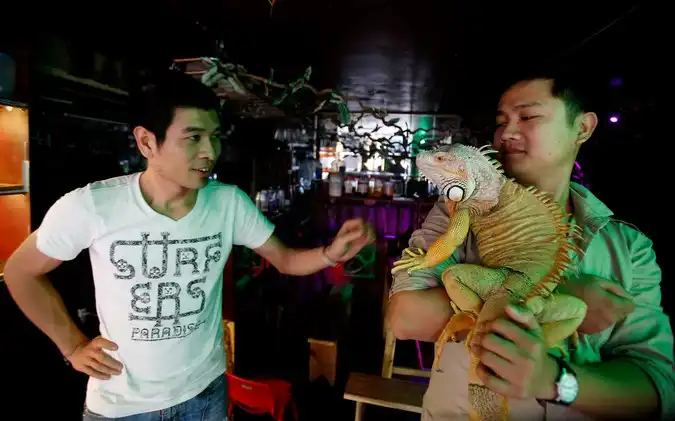 В Ханое открылось кафе с экзотическими домашними животными, такими, как змеи, ежи и тарантулы, не предназначенными в пищу. Клиентам разрешается их трогать, брать на руки и кормить.