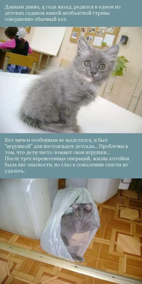 Трогательная история одного кота, который нашел себе новый дом и любящих хозяев.