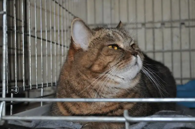 Бэлла - породистая британская кошка, ей 4года, окрас "черный мрамор". Принесли усыплять в клинику, потому что "некогда заниматься кошкой". Крупная, имеет лишний вес, нужна диета. Характер "британский", фамильярностей не любит. Сейчас в стрессе конечно, никому не доверяет. Хотелось бы найти для кошки ответственных, терпеливых хозяев, желательно знакомых с особенностями британских кошек. Питается готовыми кормами, пользуется лотком. Стерилизована, привита, имеет ветеринарный паспорт. К сожалению, пока удалось сфотографировать только в клетке. Обижена на всех, выходить оттуда не хочет.
