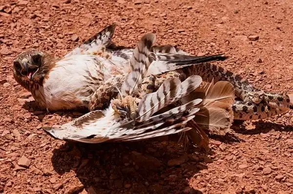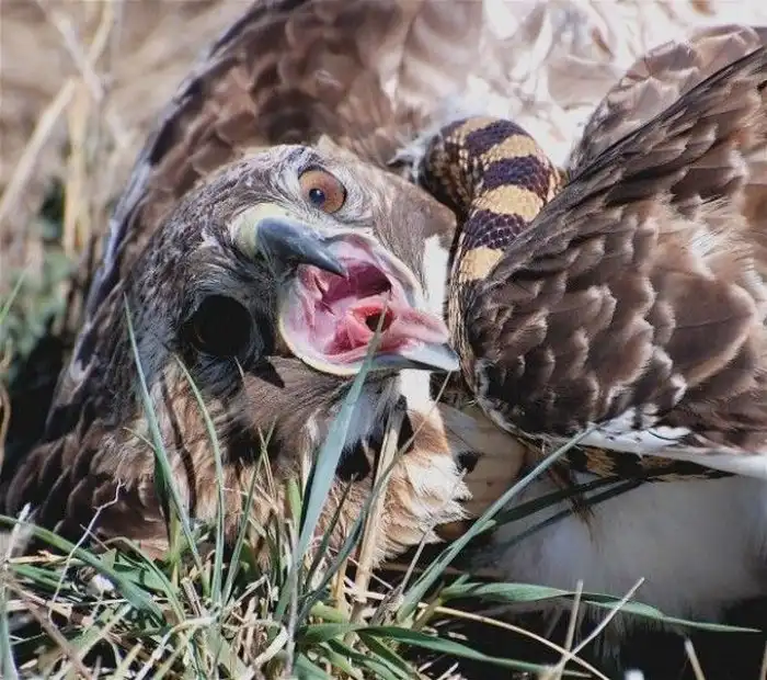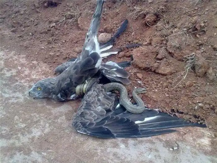 Но если птичка оплошает в последний момент, и змея отреагирует быстрее, то крачун сам становится жертвой.