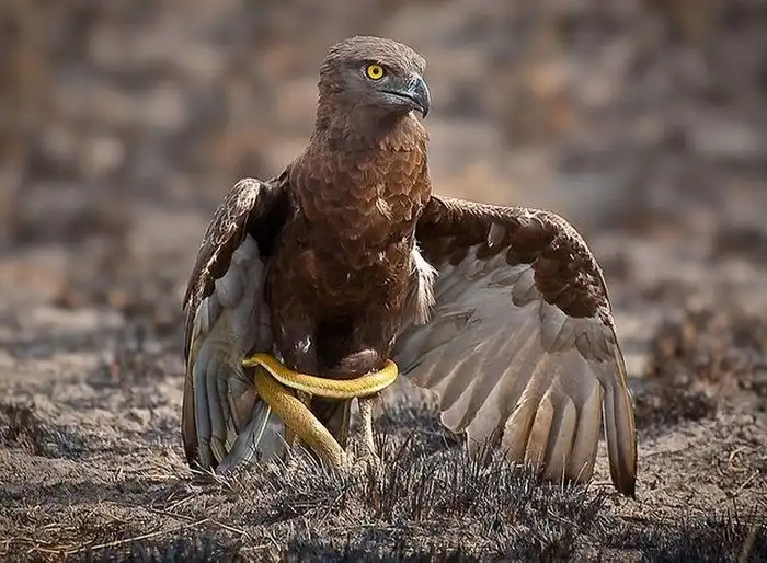 Орёл-змееяд или крачун - вымирающая птица семейства ястребиных, занесенная в Красную Книгу. Из названия становится понятно, чем он питается. Так вот, крачун обладает определенными навыками и острыми когтями, против которых у пресмыкающихся нет шансов.