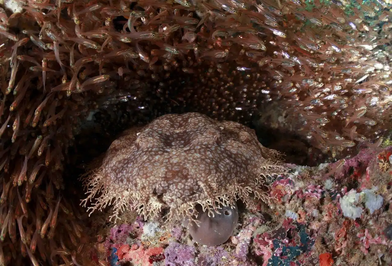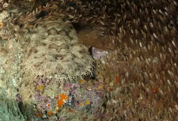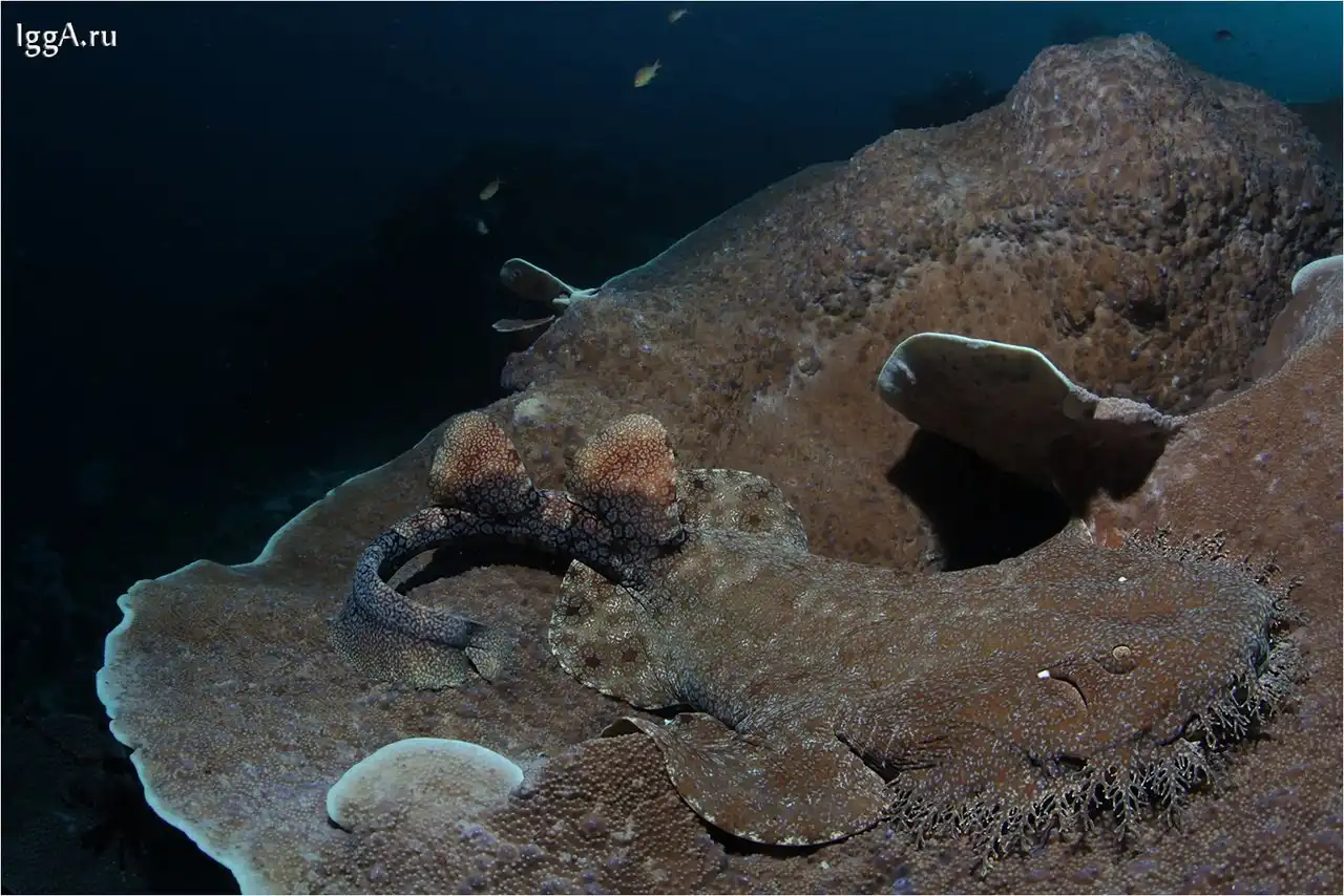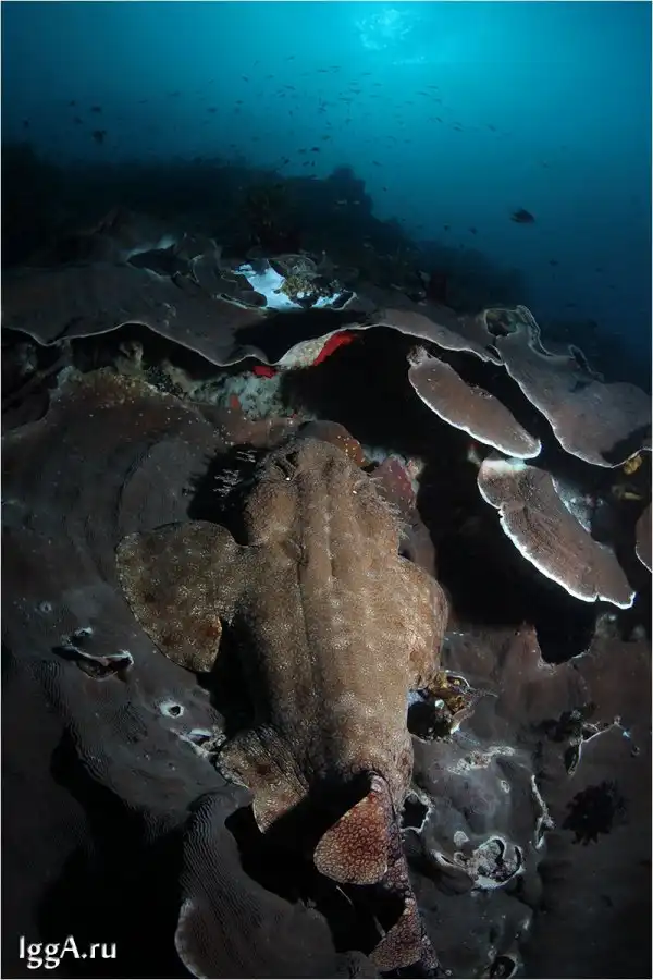 В подавляющем большинстве случаев их можно найти в пещерках, под кораллами, в укрытии, там, где они могут лежать в засаде и поджидать добычу. Ковровые акулы очень стеснительные, всегда стараются спрятаться и никогда не атакуют дайверов. Но если зажать бородача в пещере и не оставить ему выхода, то защищаясь он может вцепиться и с легкостью прокусить гидрокостюм. Говорят, что в таком случае оторвать его практически нереально, т.к. воббегонги отлично дышат с закрытым ртом, а зубов у них несколько рядов.