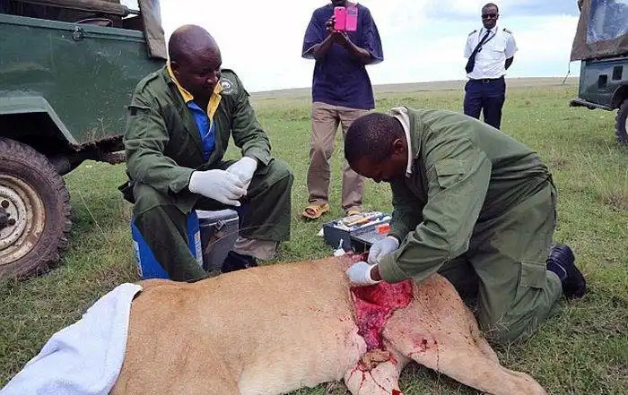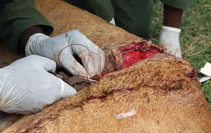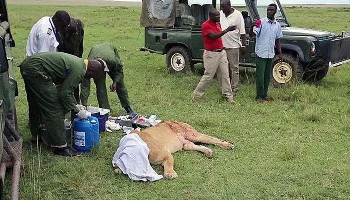 Операцию пришлось делать прямо на месте под открытым небом, а продлилась она несколько часов, пока ветеринары сшивали разрыв мышц и кожи и обрабатывали рану. Спасти ее жизнь было приоритетной задачей, ведь львица должна была вернуться к своему 3-месячному потомству. На данный момент львица уже пошла на поправку и постоянно находится под наблюдением ветеринаров.
