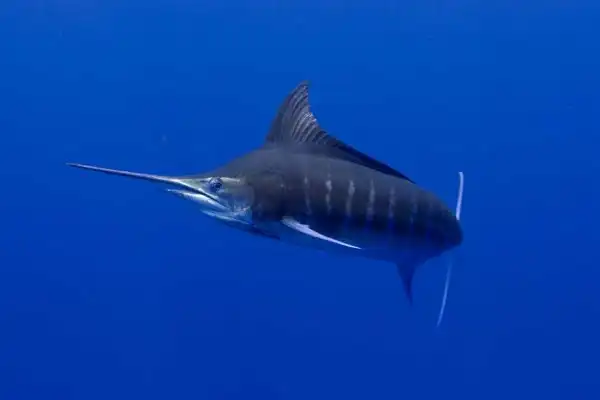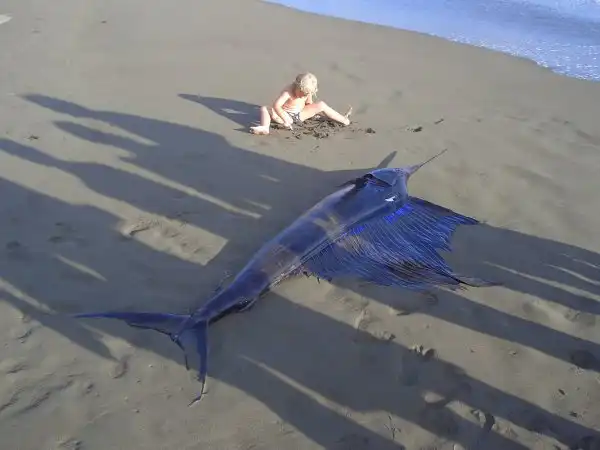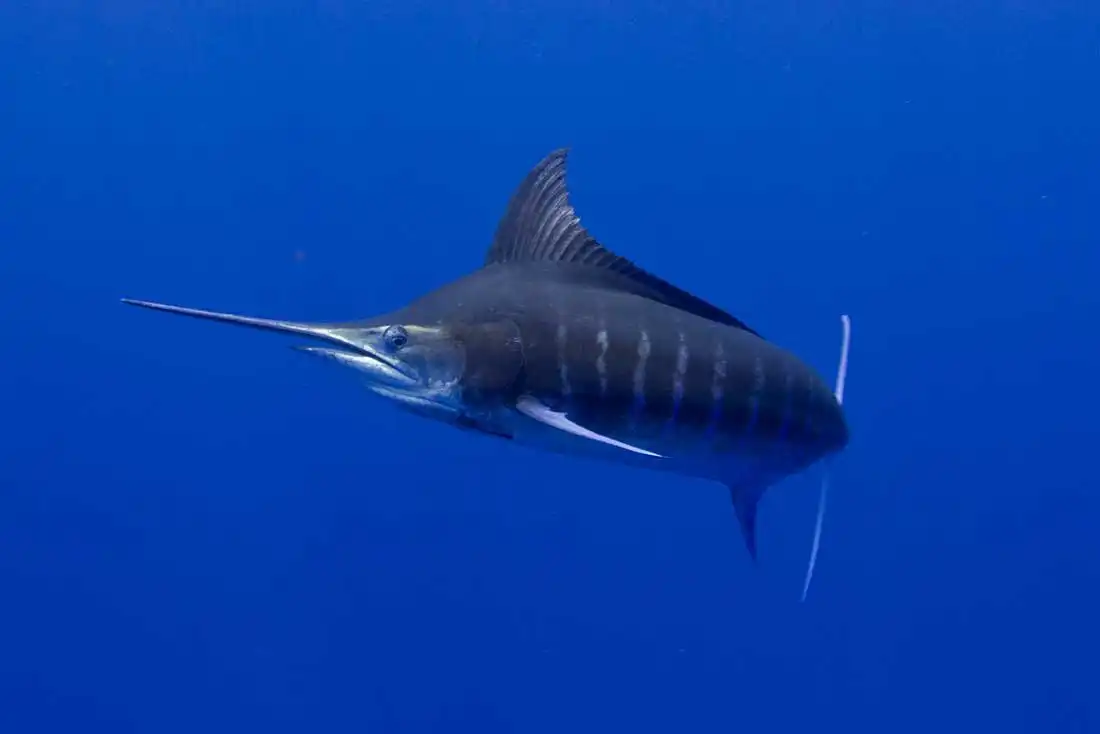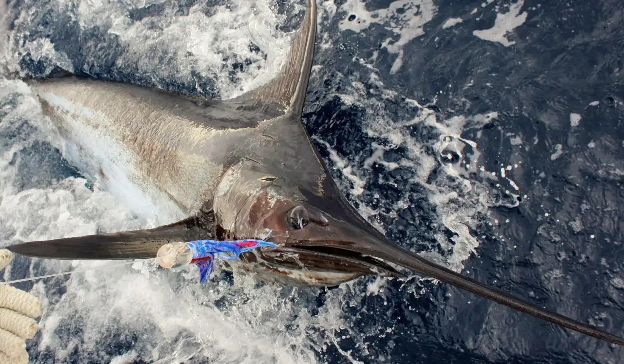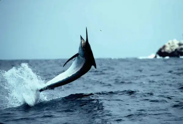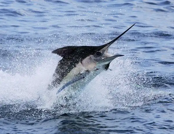 Касательно большой рыбалки – голубой или синий марлин, это одна из самых больших известных науке костистых рыб, имеющая удлиненную верхнюю челюсть в виде пики. В латинском названии Makaira nigricans первое слово происходит от machaera, что значит «меч». И действительно, этот длинный меч, или копье, очень прочный, острый и круглый в диаметре применяется им при охоте, а так же служит для рассечения воды при передвижении, повышая его скоростные характеристики.