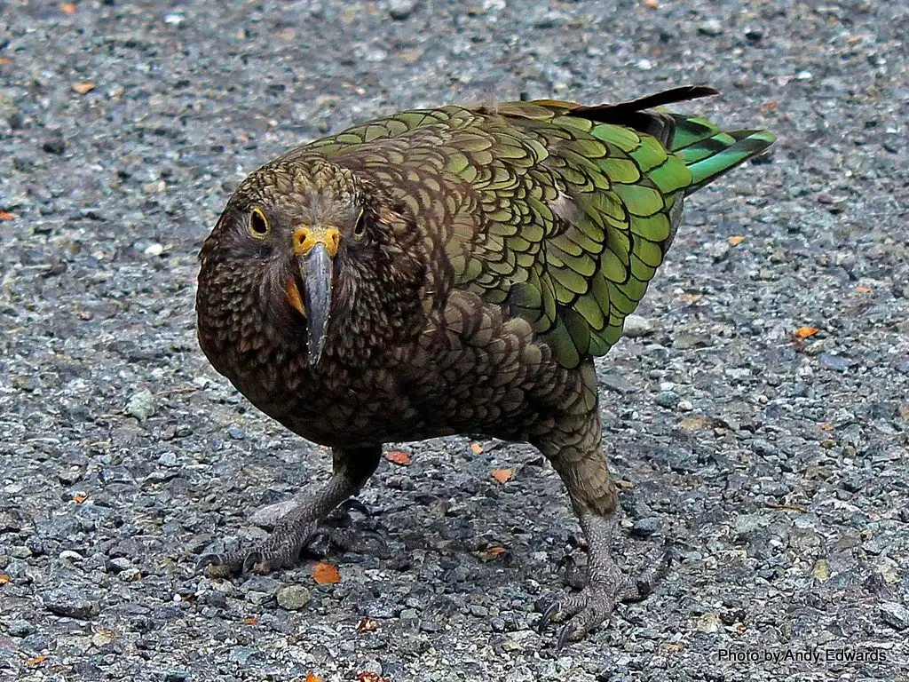 «Мы поехали посмотреть на кеа на автостоянку перед входом в 1,3-километровый тоннель Хоумер. Как только мы остановились, несколько удивительно крупных птиц окружили наш автомобиль, точь-в-точь те попрошайки, что навязчиво предлагают помыть ветровое стекло, стоит вам только остановиться на светофоре.