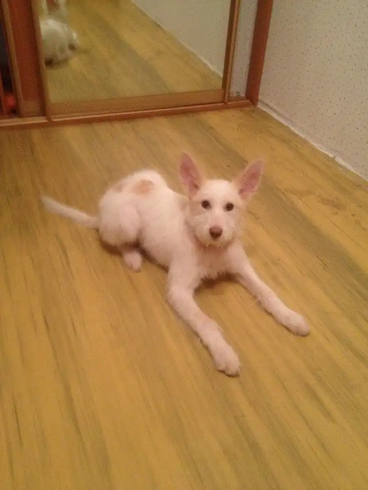 Терьеристая красавица со звонким голосочком и заячьими ушками Зоенька) 6 месяцев, привита, стерилизована, имеет паспорт. Смышлёная и добрая девочка. Как все щенята - очень активна и любит шалить. Очень ранимая и сентиментальная особа. К выгулу приучена, в порче вещей дома не была замечена. Отдаётся только в семью, так как для охраны на цепи не подходит. Не отдаётся в семью с маленькими детьми. К другим собакам насторожена, к котам относится спокойно и с умеренным интересом.