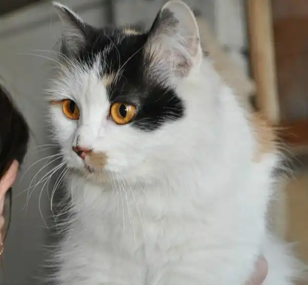 Ася - кошечка черепахового окраса, пушистая, с ярко-желтыми глазами. Ей примерно 1 год. Найдена на улице. Милая, ласковая, добрая девочка, очень любит внимание к себе. На носике шрамик, происхождение его неизвестно. Предпочитает натуральную еду. Лотком пользуется. Стерилизована.