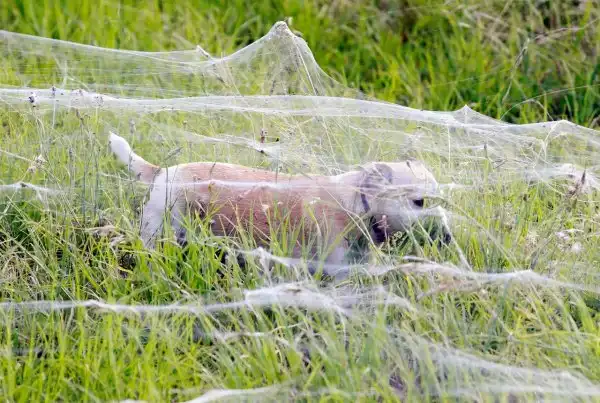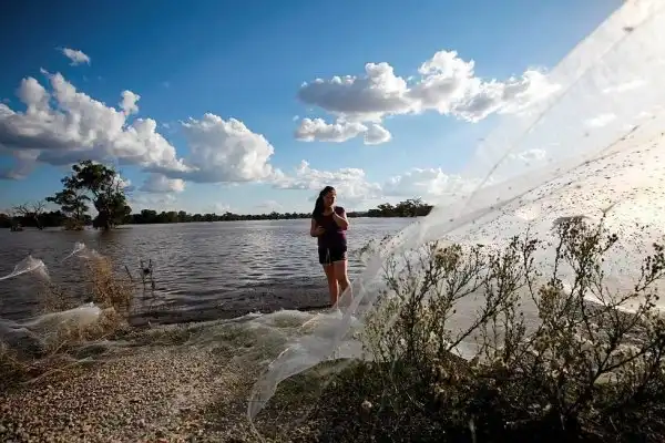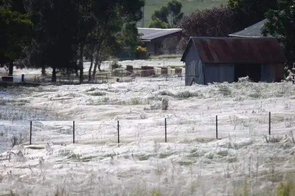 А вот в 2012 году, в результате наводнений, обрушившихся на штат Новый Южный Уэльс, миллионы пауков были вынуждены спасаться от наступающей воды на деревьях и кустах — не забывая при этом плести свою паутину.