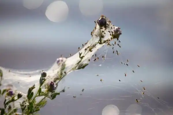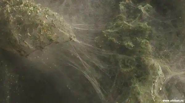 Согласно данным биологов, «молодые» паучки по достижению репродуктивного возраста начинают плести своеобразные «парашюты». Порывы ветра подхватывает их и уносит в неведомые дали. А в сезон дождей и безветрия паучки остаются на месте, скапливаясь огромными массами. В ноябре начавшиеся снежные бури и ветра снесли эту странную паутину.