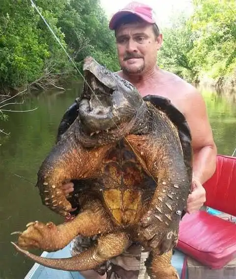 Вместо этого мужчина поймал доисторическую черепаху весом в 45 килограммов. В конечном итоге рыбак все-таки выпустил свой массивный улов, который, как оказалось, является редкой аллигаторовой черепахой, однако перед этим все же сделал несколько снимков, которые стали вирусными. На ставших необычайно популярными снимках запечатлен голый по пояс Харрелл, изо всех сил пытающийся удержать крупную рептилию. После фотосессии черепаха была отпущена в воду невредимой.