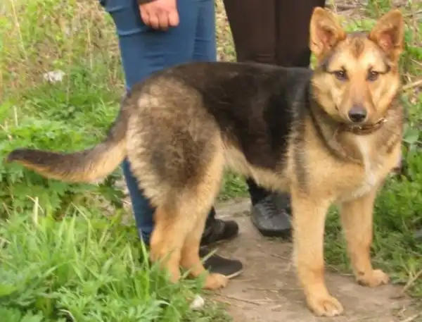 Дворняжку-"маму" волонтеры теперь в шутку называют своим человеком, зоозащитницей. На вид собаке 7-9 месяцев.