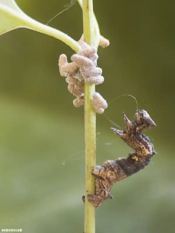 Препарирование мёртвых гусениц показало, что в теле пядениц остаются одно или два яйца, которые, судя по всему, и управляют хозяевами в период окукливания остальных особей. Какими то жругими причинами это пока объяснить нельзя.