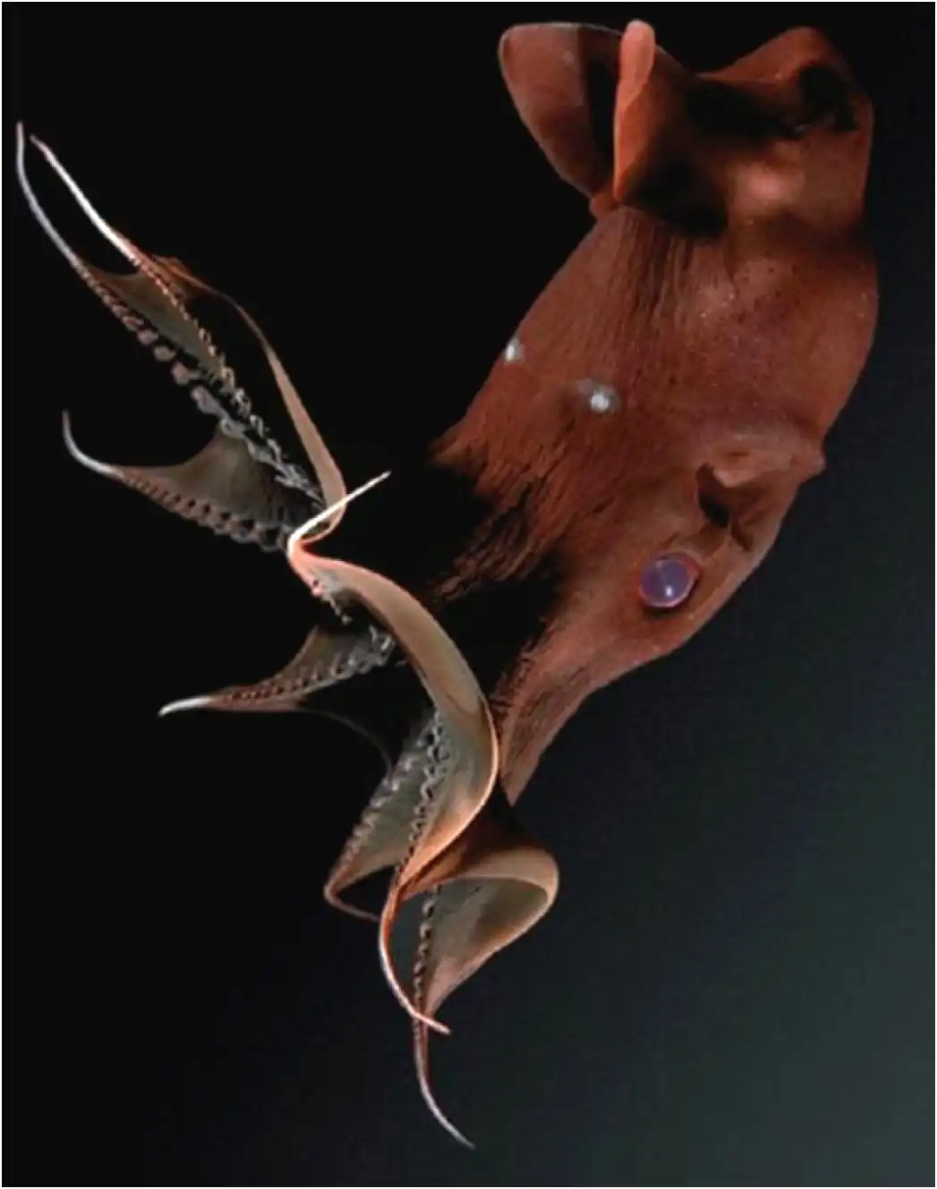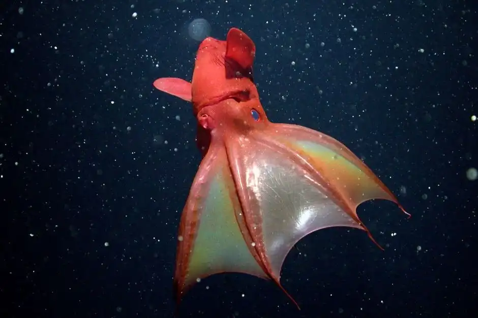 Поистине устрашающее название – адский вампир, получил маленький головоногий моллюск, обитающий на больших океанских глубинах в тропической и умеренной климатических зонах.Несмотря на его очевидную схожесть с осьминогом и кальмаром, этого моллюска ученые выделили в отдельный отряд Vampyromorphida (лат.), потому как только ему присущи втягивающиеся чувствительные бичевидные филаменты. Также адский вампир представляет собою единственный вид и единственный род этого отряда: Vampyroteuthis infernalis Chun и Vampyroteuthis Chun соответственно. Уникальность этого моллюска еще состоит и в том, что он единственный головоногий, зона обитания которого находится на глубине в 400 — 1000 метров при минимальной концентрации кислорода в воде.