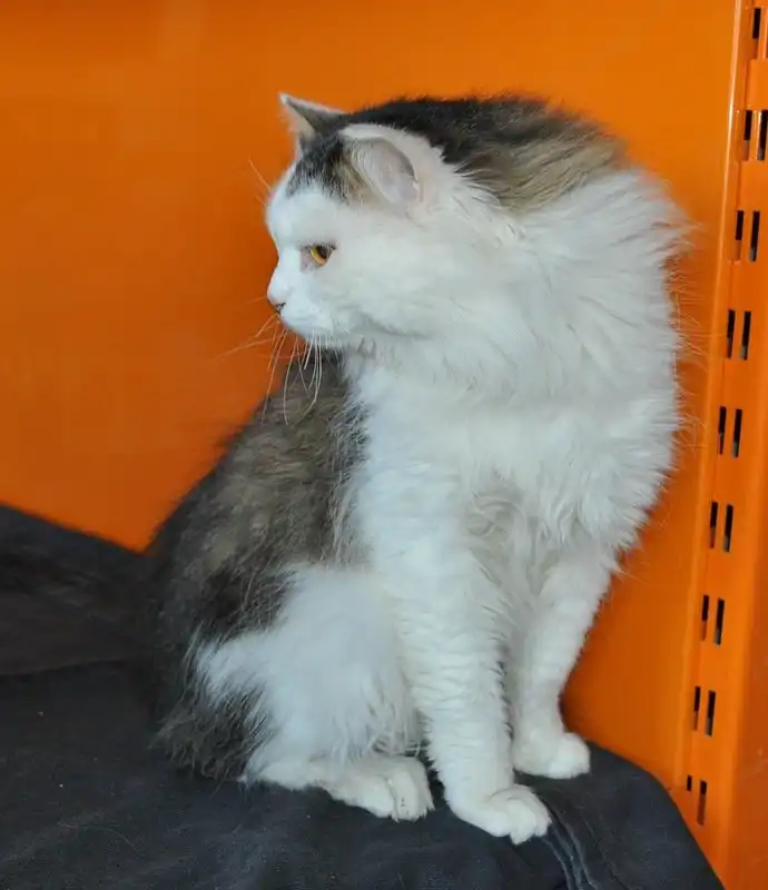 Суперкот Киану ищет дом. Большой, упитанный брутальный красавчик средней пушистости не может никого оставить равнодушным. Котик бело-полосатого окраса с прекрасными ярко-желтыми глазами, а его рыжая "родинка" на правой щечке - настоящий эксклюзив. Возраст котика 2-3 года. Найден на улице полгода назад в плачевном состоянии. Подлечился, откормился, научился пользоваться лотком, и готов начать новую жизнь. Прекрасно уживается с другими животными. А еще он умеет танцевать smiley Не кот, а мечта. Питается готовыми кормами, лотком пользуется, кастрирован.