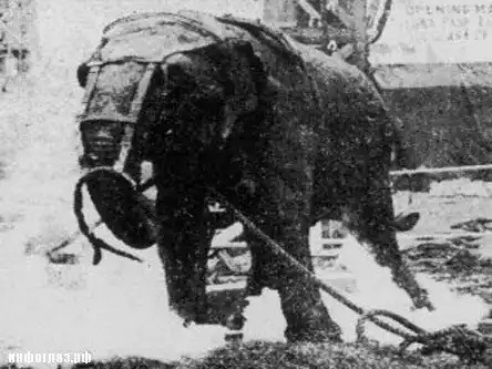 Для Эдисона представилась великолепная возможность продемонстрировать опасность переменного тока, который может быть смертельным даже для слона. На шею слона был привязан трос, один конец которого был прикреплен к вспомогательному двигателю (donkey engine), а другой – к столбу.