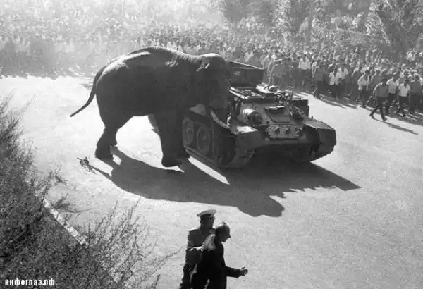 Ереванский Горсовета стал принимать экстренные меры-перекрывать улицы, а слон, в окружении огромной толпы бежал вниз по проспекту Мясникяна. Власти вызвали солдат и военную технику, но стрелять во всеобщего любимца они отказывались. Ничем не мог помочь и Иван, которому слон уже не подчинялся. Потом пришел приказ из Москвы и солдаты открыли огонь: пара пуль попали слону в голову, от чего он еще больше озверел. Но пули бились еще и о скалы и рикошетом могли попасть в людей, поэтому стрельбу практически сразу прекратили.