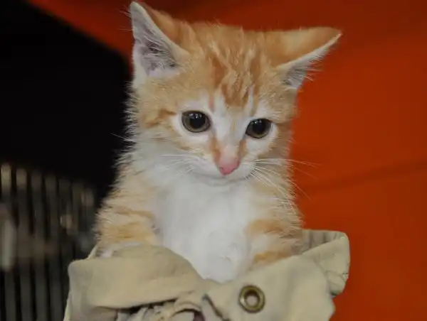 Маленькая рыженькая с белым котодевочка, возраст примерно 1,5 мес. Умненькая, пользуется лоточком, хорошо кушает корм для котят. Вот только побаивается людей. Ищет человека, который научит ее доверять. Имеет сертификат на скидку при стерилизации.