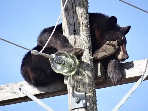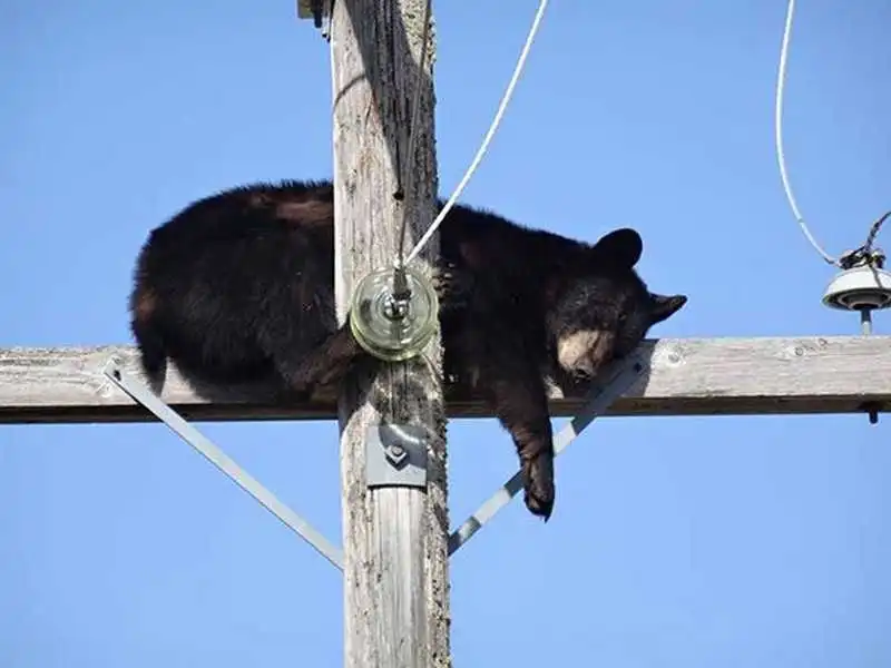 В канадском городе Шелбрук медведь, убегающий от стаи собак, забрался на электрический столб. Почувствовав себя в безопасности, косолапый решил вздремнуть, но долго отдыхать ему не удалось - сотрудники компании, отвечающей за электроснабжение города, прибыли на место происшествия и начали готовиться к тому, чтобы снять животное.
