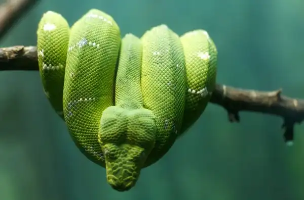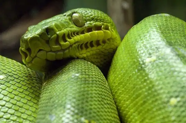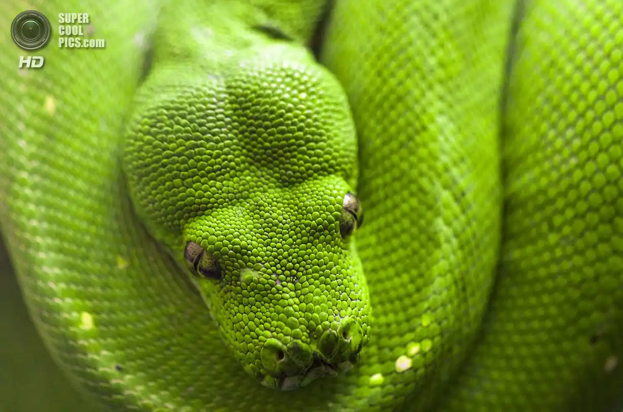 Собакоголовый, или зеленый древесный удав достигает обычно длины 170-220 см. Окраска тела ярко-зеленая. По спине проходят тонкие линии белого узора, образующие ажурный ромбовидный рисунок. Брюхо желтое. Эта окраска великолепно маскирует змею в сочной зелени тропического леса. Голова очень крупная, что подчеркивается резким шейным перехватом.