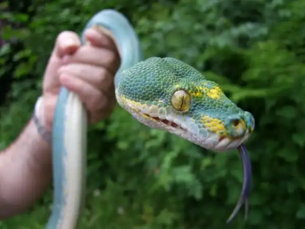 Не ядовит. Передние зубы длинные — до 3,8 см.
