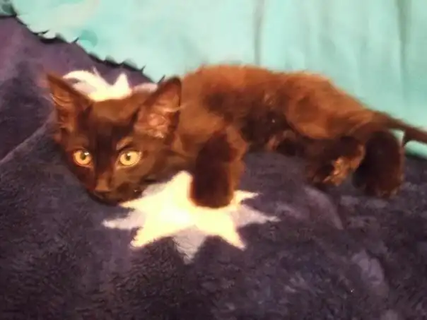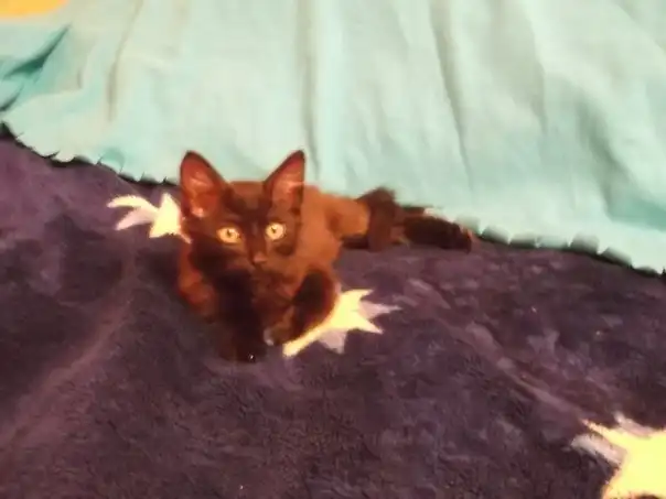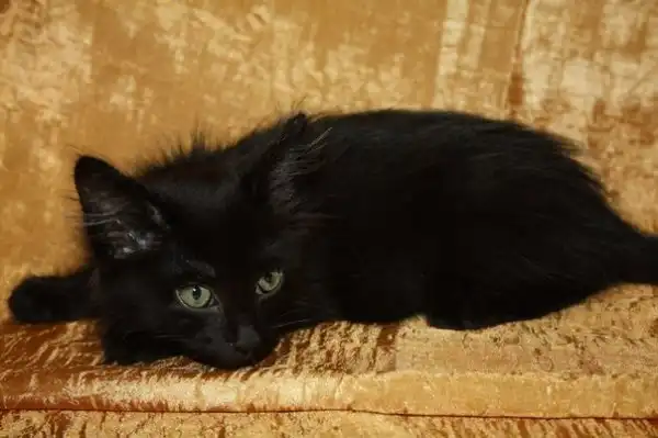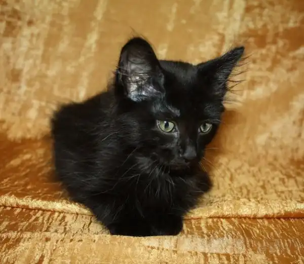 Прекрасный абсолютно чёрный (только кисточки на ушах с белым) пушистый котик 2,5 мес. Очень игривый, подвижный, громко мурлычущий, когда его гладишь, любит "поговорить"))) Но при всём этом пугливый в связи с тем, что был найден в подвале, так что доверие нужно завоевать) К лотку приучен. Ветеринаром осмотрен, блохи протравлены, глисты в процессе (повторить 30.06, таблетка есть). Если вы хотите иметь дома прекрасное создание, которое будет вам поднимать настроение, то это ваш шанс.