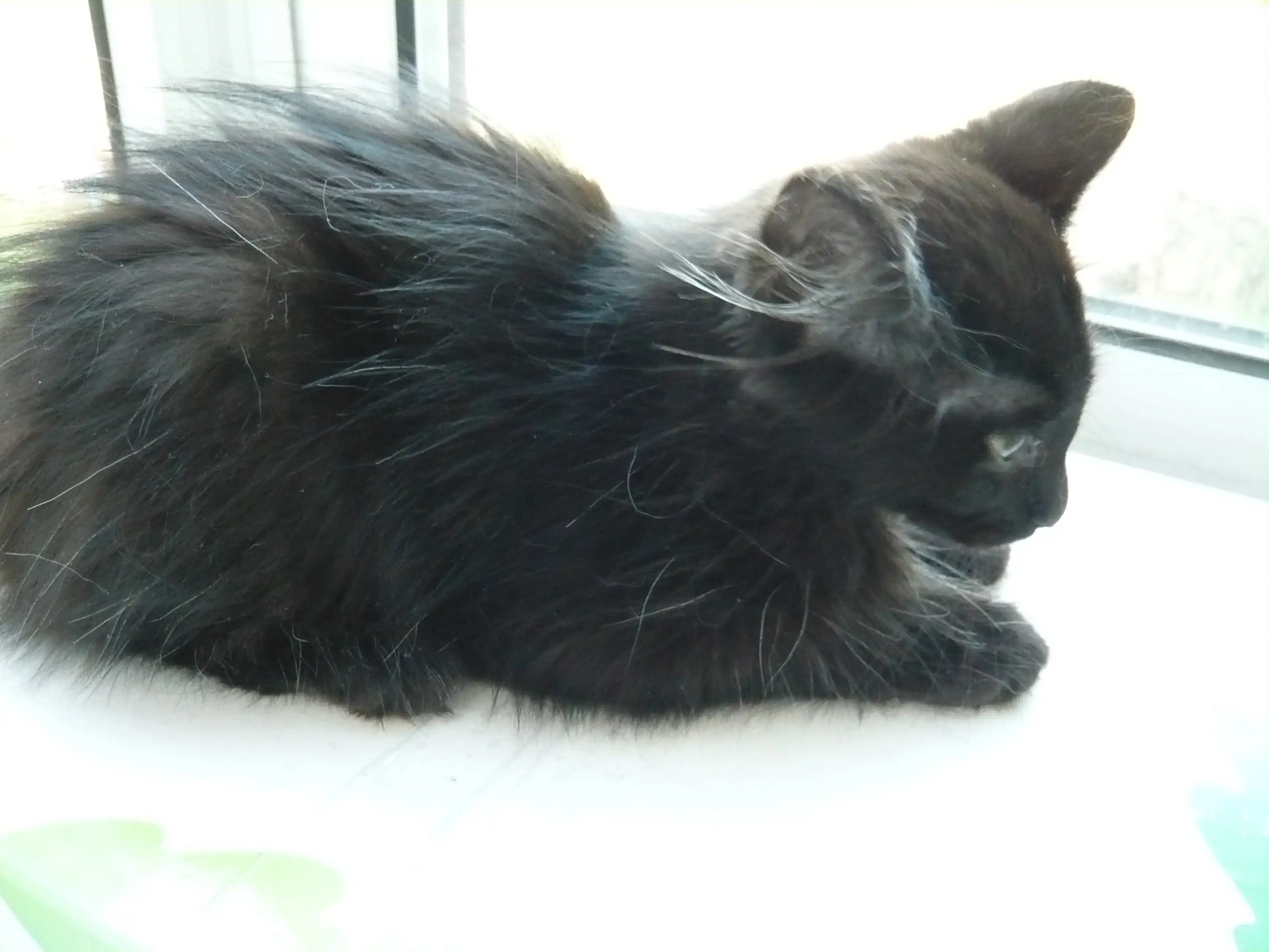 Черная с легкой проседью, без белых пятен, пушистая девочка. И прекрасный абсолютно чёрный (только кисточки на ушах с белым) пушистый мальчик.