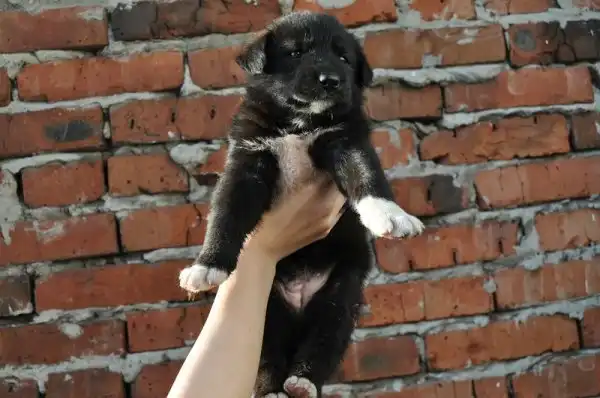Ребятишки нашли в лесу щенков, принесли и спрятали их во дворе. Рано утром жильцы услышали писк, теперь мы их кормим. Возраст примерно - 1 месяц, кушают самостоятельно, упитаны, здоровы. Щенки вырастут средними, а возможно и крупными.