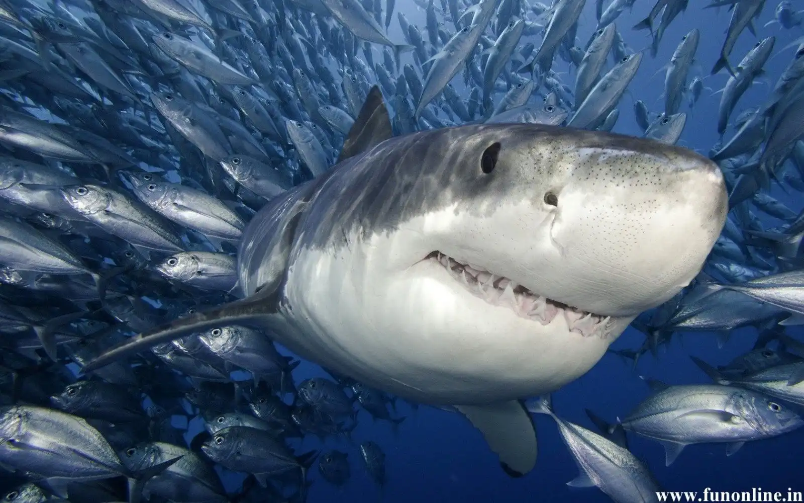 Рыба плотно сбилась в косяк. Птицы и пингвины атакуют со всех сторон. В завершении на бедных рыб обрушивается огромная пасть кашалота.