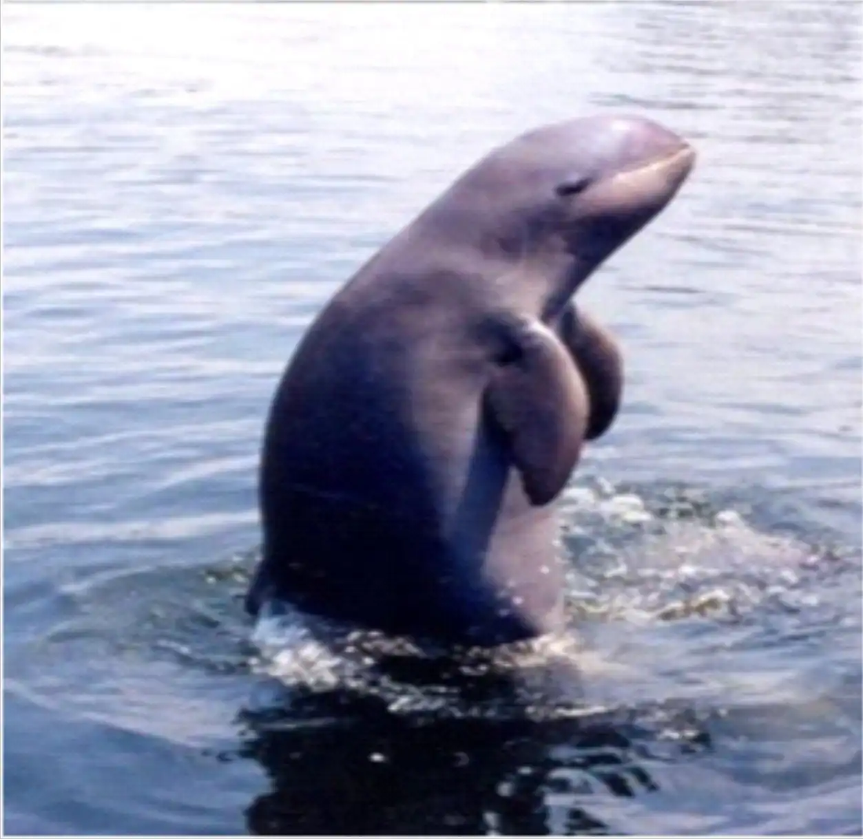 Вообще, иравадийскитй дельфин — существо весьма интересное. Долгое время считалось, что это единственный представитель семейства, который абсолютно лишен даже хоть какого-то подобия «клюва» (напомню, что клювом у дельфинов называют выступ на морде, образованный удлиненными челюстями). Кроме того, эти дельфины — одни из немногих китообразных, у которых шея может двигаться в разные стороны (у большинства представителей этой группы она полностью неподвижна).