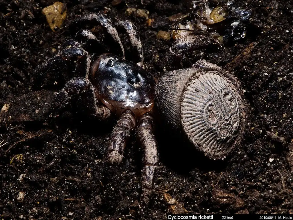 Диаметр "пробки у циклокосмий может достигать 16 мм, как раз достаточно что б закрыть собственным "тылом" вход в любимую нору. Но на этом хитрости обороны у люковых пауков не заканчиваются - животные строят свои убежища на субстратах, которые идеально подходят по цвету к их "пробке", таким образом хищные животные не могут увидеть даже гипотетическую норку ибо брюшко паука идеально сливается с окружающей средой.