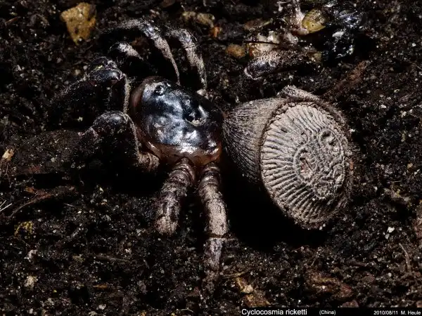 Паук циклокосмия относятся к паукам семейства трапдоры (в переводе с английского «trapdoor» означает «лазейка», «люк»). Все виды пауков этого семейства выкапывают себе норки и делают крышечку, которую удерживают лапами изнутри. Трапдоры считаются самыми древними пауками на земле.