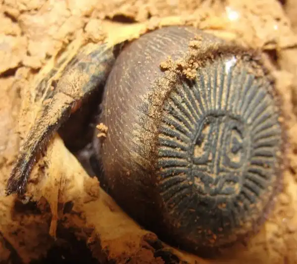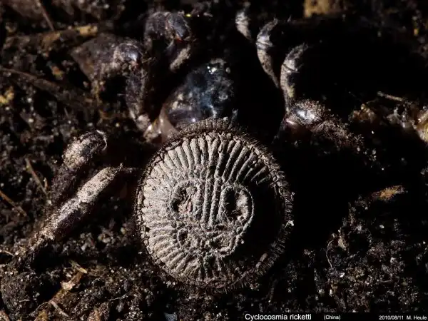 Циклокосмия (Cyclocosmia truncata) имеет своеобразное усеченное брюшко с замысловатым рисунком, который очень напоминает древнюю «печать». Брюшко этого паука резко заканчивается твердой плоской поверхностью в форме диска, на котором расположен очень интересный узор. Он чем-то напоминает один из символов древних цивилизаций, например, майя.