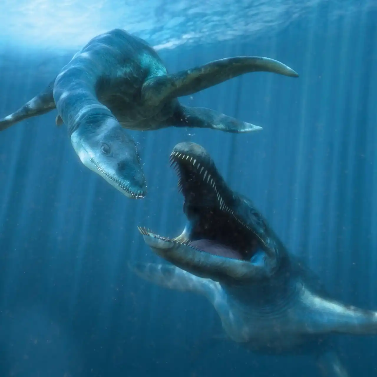 На иллюстрации — плиозавр нападает на плезиозавра.