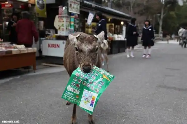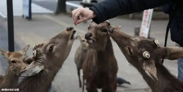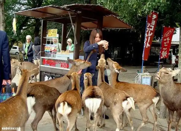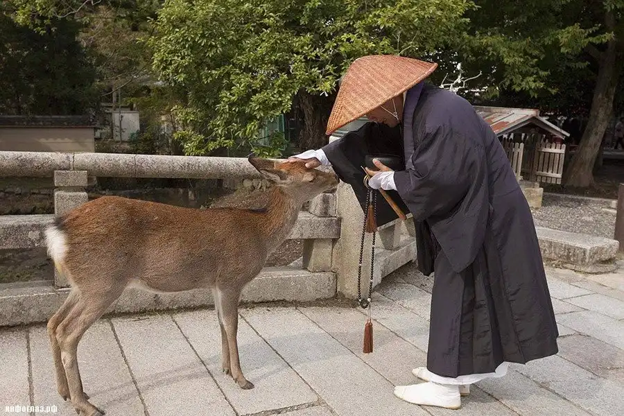 Дело в том, что жители вот уже больше тысячи лет соблюдают правило. По одной из легенд, все местные парнокопытные являются потомками мифического оленя, на котором спустился с небес первый император Японии. Единственное, что разрешается, — это покупать им полезный и сытный корм.