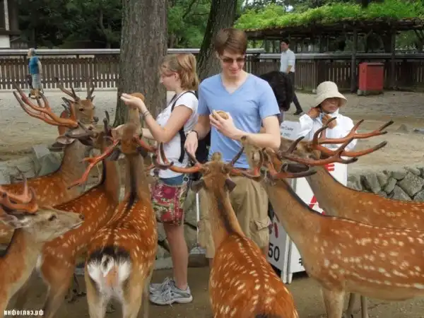 Нара — старинный японский город с богатой историей, который был когда-то столицей Страны восходящего солнца. От былого величия остались многочисленные достопримечательности, древние храмы и прочие здания, привлекающие туристов и паломников. Но главная достопримечательность города — это его пятнистые олени, которые объявлены здесь священными животными.