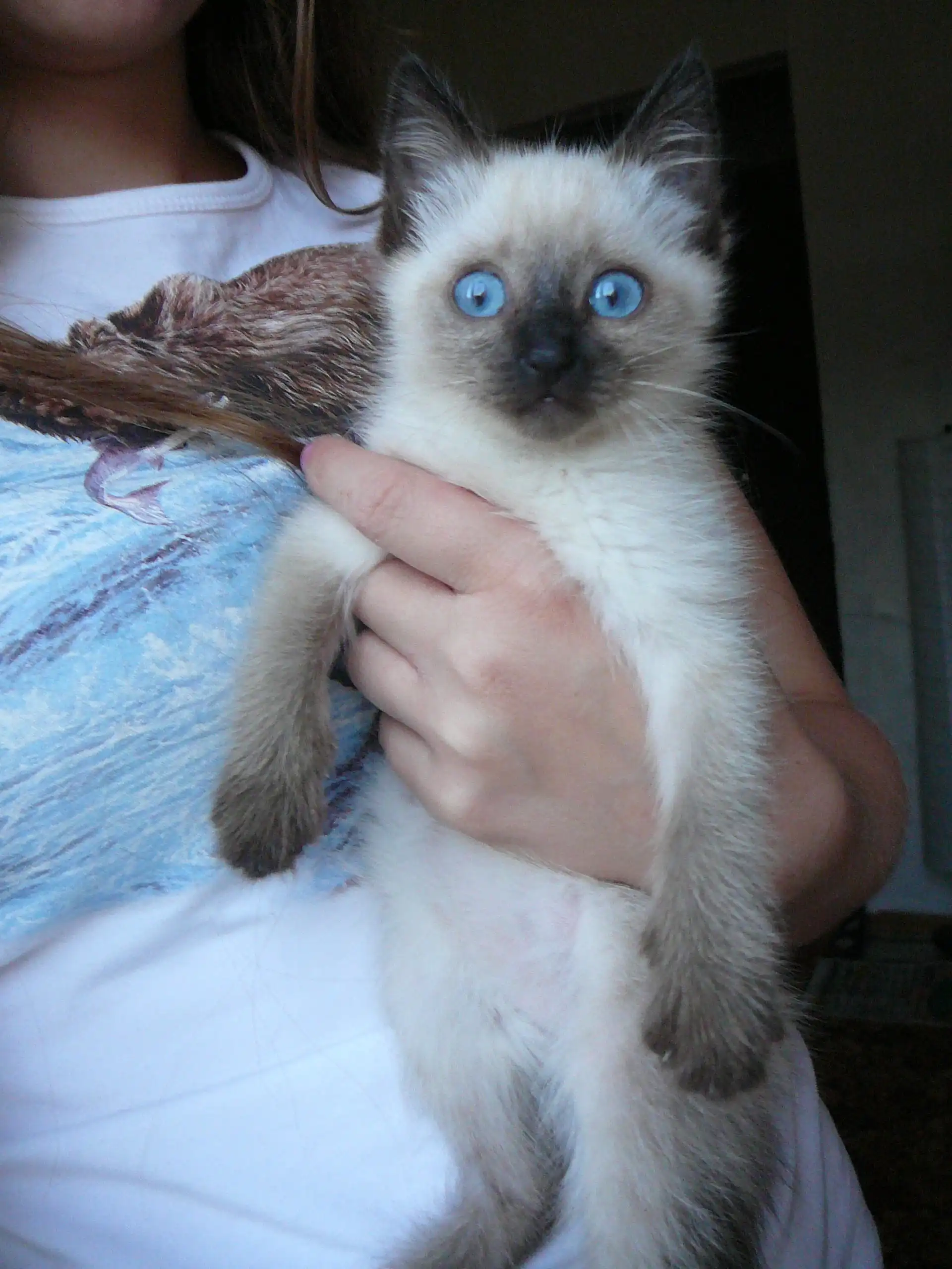 Была совсем крохотной и чумазой, сейчас отмыта, окрепла и чувствует себя уверенно. Очень игривая, общительная, любит человеческую компанию. Возраст около 1,5 месяцев, приучена к лотку (ни разу не сходила мимо). Здорова, от паразитов избавлена. В дальнейшем обязательна стерилизация, льгота будет.