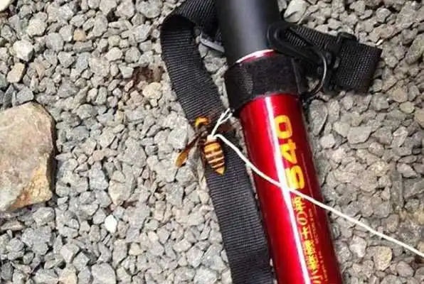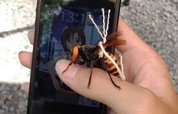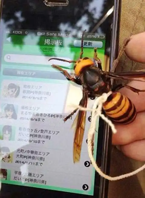 Пользователь Twitter Mikuru625 утверждает, что поймал шершня сачком. Взяв насекомое пинцетом, он вырвал его жало и удалил мешочки с ядом. После этого он обвязал вокруг грудной клетки насекомого "поводок" и теперь безвредный шершень следует за ним повсюду.