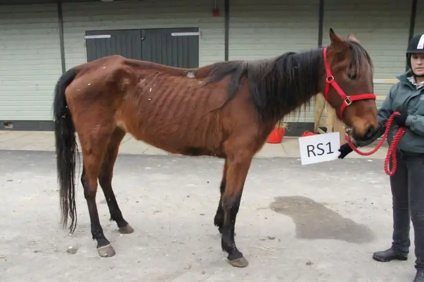 Полли и еще две истощенные лошади были найдены волонтерами Королевского общества по предотвращению жестокости по отношению к животным в Бакингемшире, Англия. Лошади уже были в крайне тяжелом состоянии, выжила только Полли. Ее ждало долгое восстановление, но она справилась.