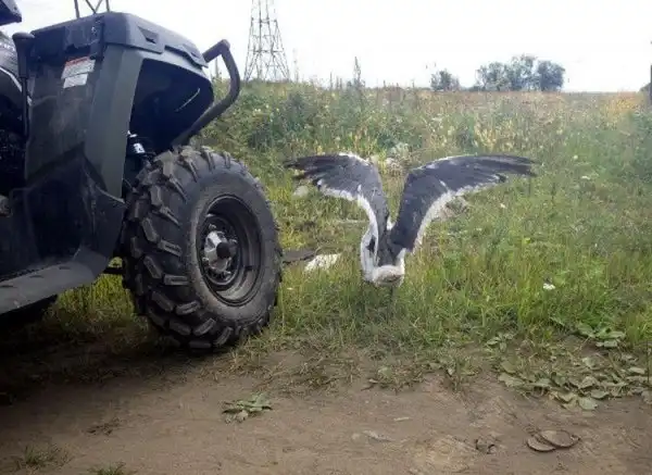 Автор ехал с рыбалки и на дороге встретил чайку у которой были запутаны рыболовным шнуром клюв и "весло". Птиц не мог ни есть ни взлететь, т.к. шнур был так натянут, что птице ни разбег ни взять ни крылья полностью расправить. Весь в какой-то тухлятине.