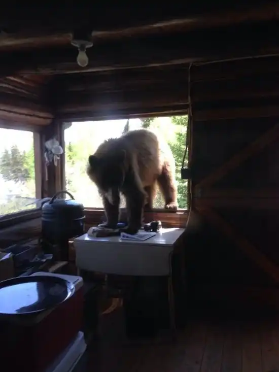 В итоге медведь забрался внутрь через окно но не стал жрать бабу, а вместо этого начал клянчить вкусняшки.