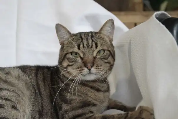 Василий - крупный красивый полосатый кот, возраст примерно 2 года. Найден на улице. У Васи есть физический недостаток - была травма правого глаза, глаз вылечен и сохранен, но осталось мутное пятно, и возможно Вася этим глазом не видит. Однако кот очень активный, веселый и жизнерадостный. С кошечками уживается хорошо, котов не любит. Пользуется лотком, питается готовыми кормами. Кастрирован.