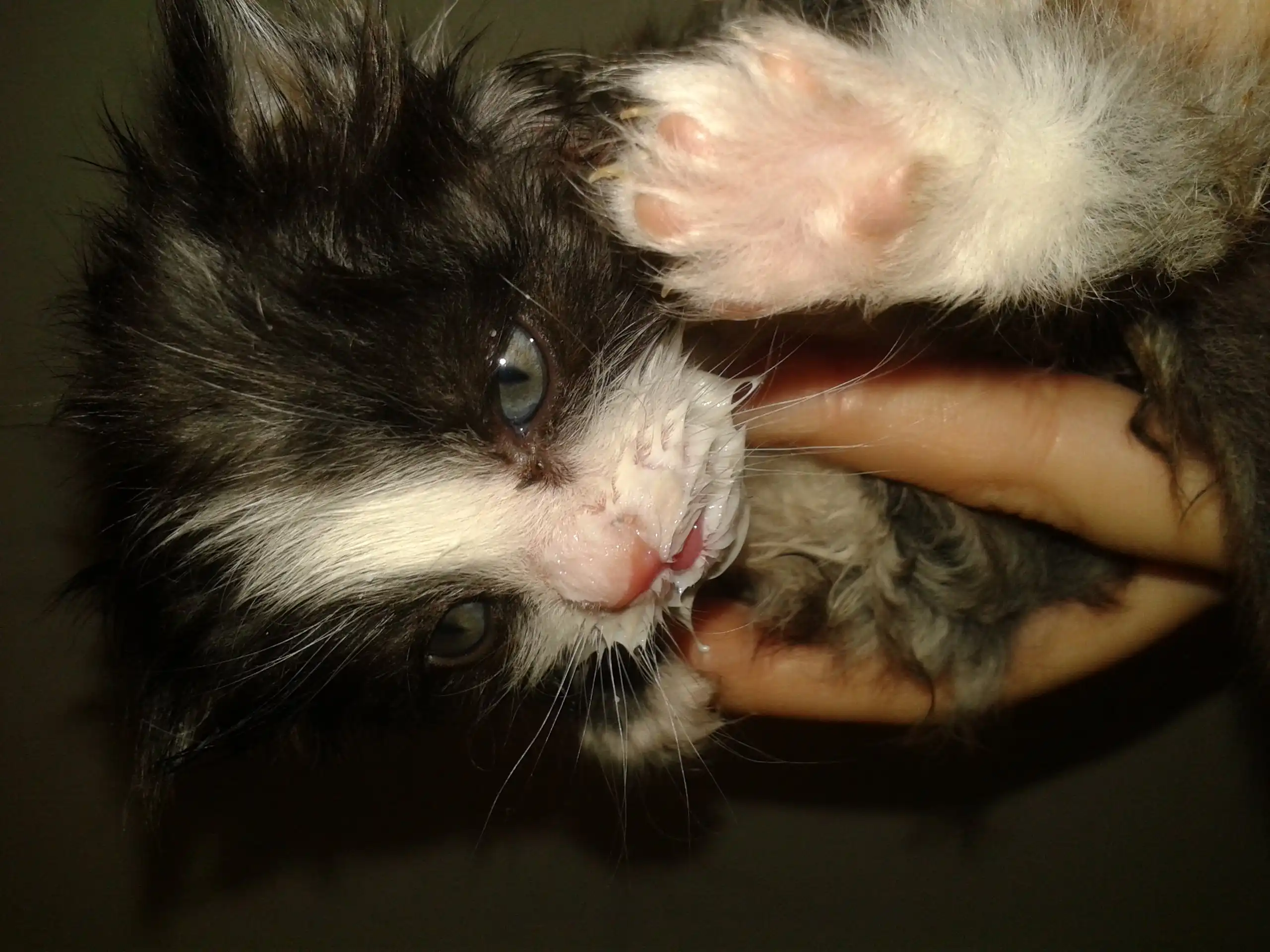 Отдам котенка, подбросили в подъезд. На вид еще и месяца нет.