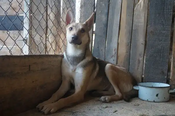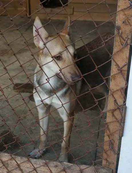 Отдам молодую собаку Лису на охрану. Возраст 8 месяцев, сука, рост в холке 45 см. Здорова, привита, стерилизована (течек и щенков не будет). Жизнерадостная, активная, игривая, ласковая и преданная, очень ждет своего хозяина! Отдается в вольер, или на цепь на проволоке через двор.